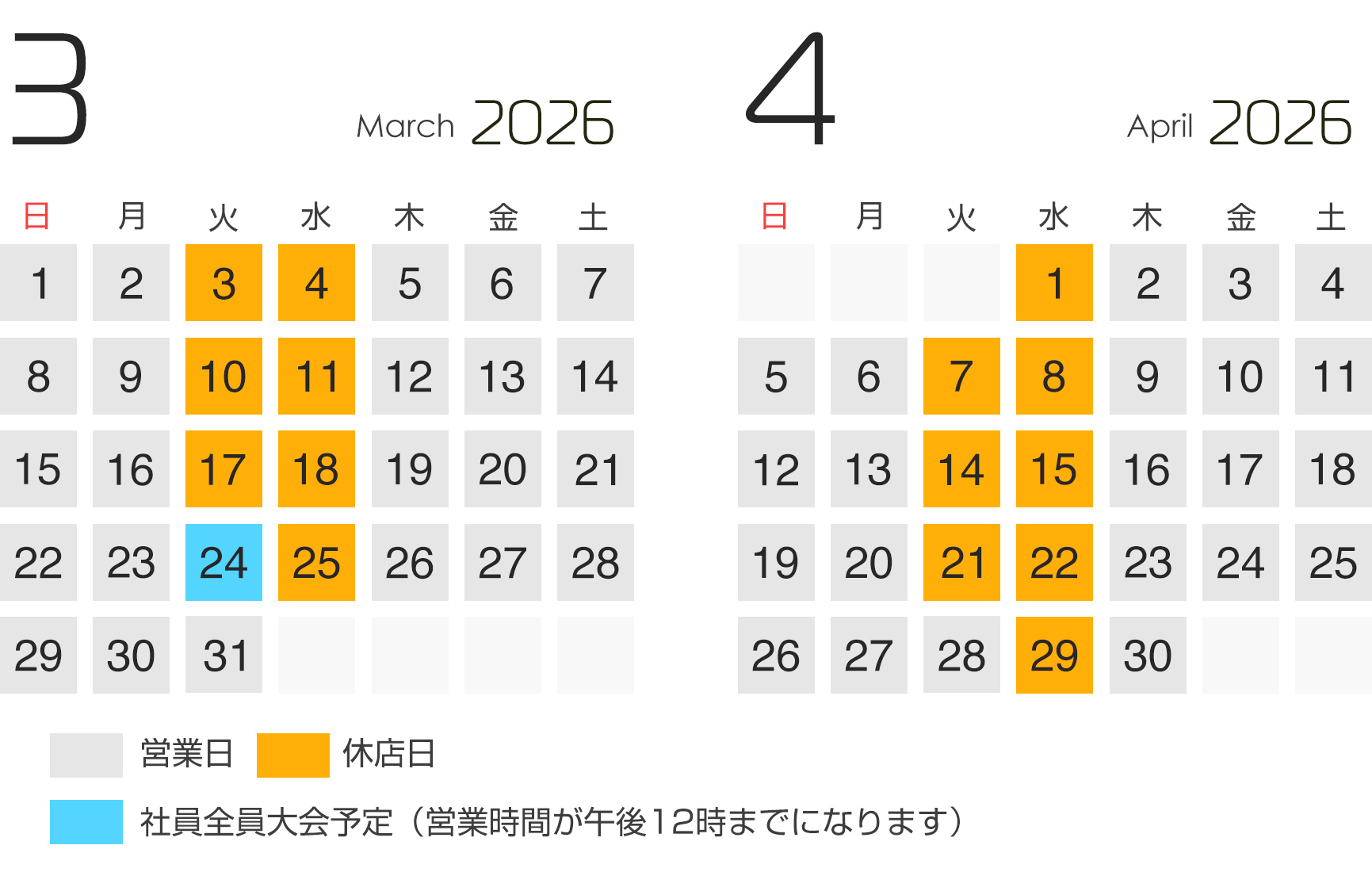 営業日カレンダー