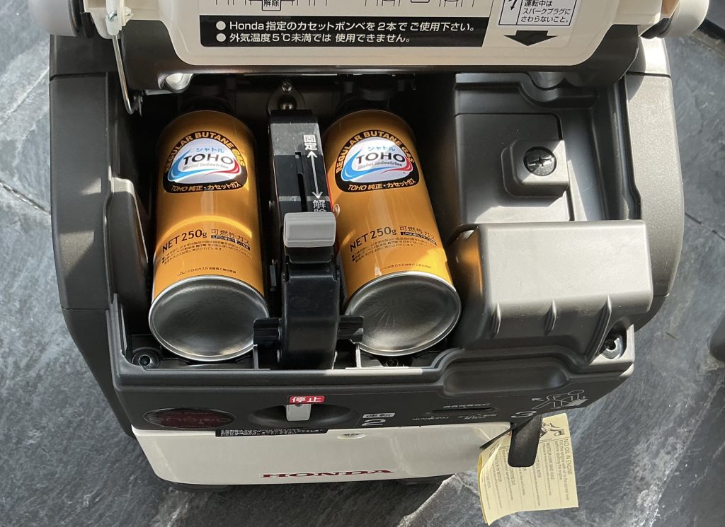 今回ご紹介するエネポですが、カセットボンベを本体に取り付けて、発電が可能な持ち運び可能な発電機です!